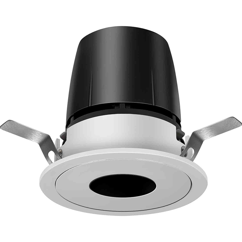 Round recessed spotlight; installation without tools with high quality easy install springs; surface silver, white, black; fixed symmetric radiation characteristic choice of adjustable - precise due to high quality lens system; variants with symmetric radiation characteristic (UGR < 15) with 4 different beam angles, passive cooling of LEDs with optimised heat sink geometry; COB (Chip on Board) technology for maximum efficiency; no multiple shadows; efficient LEDs with very good colour rendering; binning initial ≤ 3 MacAdam; light colour 2700K, 3000K or 4000K; CRI ≥ 90; L80 / 50000h; degree of protection IP20; PC III; either non dimmable, 1-10V dimmable or DALI dimmable