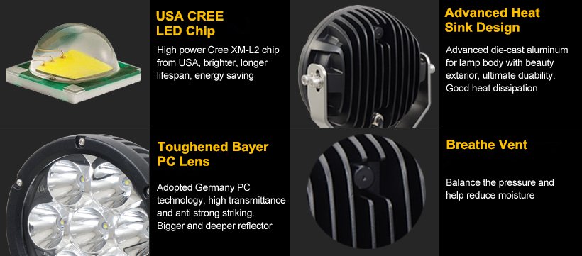> Long life time of Cree LED driving light: More than 30,000 hours