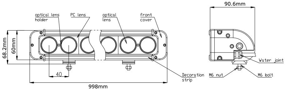 The Cree LED Light bar is very solid. Rigid housing has well heat-sink design. The reflectors are encased inside an unbreakable and scraped spot safe polycarbonate lens. The lens is GE brand from USA, same material as high speed rail windshield.
