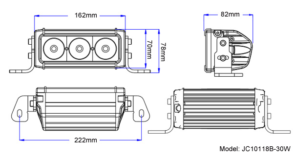 | JC10118B-30W | 6.4" | 3 | 30W | 2580LM | 1892LM | 162*70*82 | 1.85 | 9-60V | 12 |