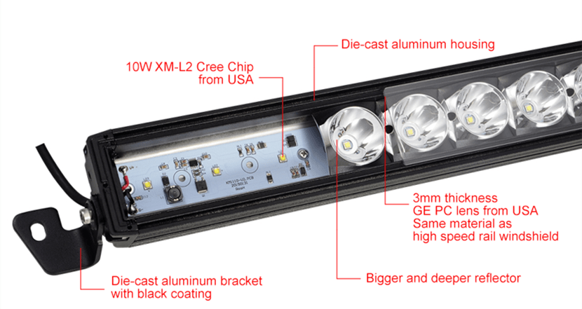 > The operating voltage range of 30W LED light bar is 9~60V DC. Serves heavy equipment trucks, 4x4s, mining vehicles, jeeps, forklifts, motorcycles, boats and almost anything where it fits.