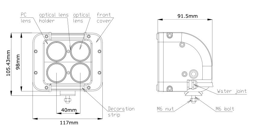 | JC10218D-40W | 5" | 4 | 40W | 3440LM | 2580LM | 117*98*92 | 2.5 | 9-60V | 12 |