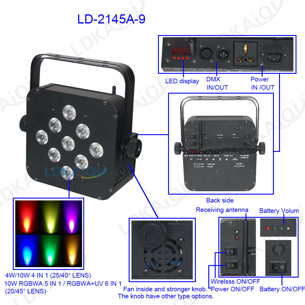 led waterproof battery wireless par light 9X10W 4in1/5in1/6in1