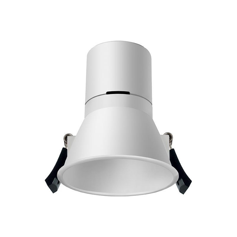 Round recessed hotel down light with narrow trim, there are wall wash and down light funtion frame changeable based on same heatsink. with passive engine-shaped cooling system and high effiency LENS optical design to achieve most soft and uniform comfortable light, four different beam angles for option, and smallest beam angle can be 6°, high end brand efficient LED with CRI≥90, Color consistency within 3 MacAdam, Colour Temperature 2700K, 3000K Or 4000K, L80 / 50000hrs. Degree Of Protection IP20. Cut size ¢95mm for 9W. Easy installation. Optional TRIAC, 1-10V Dimmable Or DALI Dimmable.