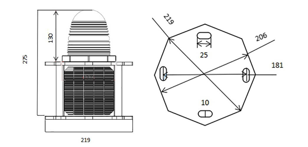 CS-810/S Low intensity Double Aircraft Warning Light can be provided with power supply without power transmission cables by solar power, so it is suitable for those locations, Electric Tower, High-rise Building, High Chimney, marking towers (Telecom, GSM, Microwave & TV), High Pole, Tower Crane, Wind Turbine, etc especially which are hard to lay the cable or lack of power supply as well as those facilities which have high requirements on lightning protection.