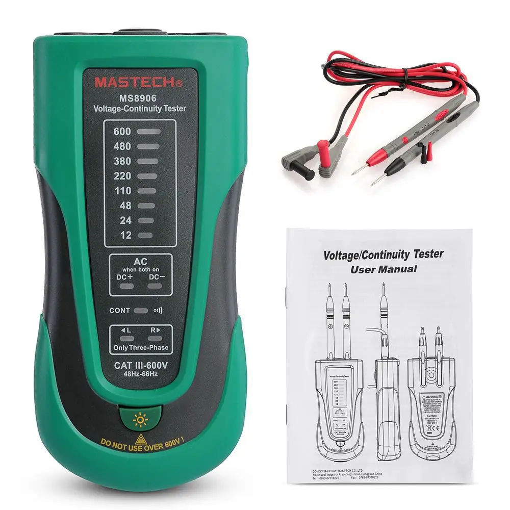 MASTECH Electronic Voltage Continuity Tester 12-600V LED Indicator Three-phase AC Tester