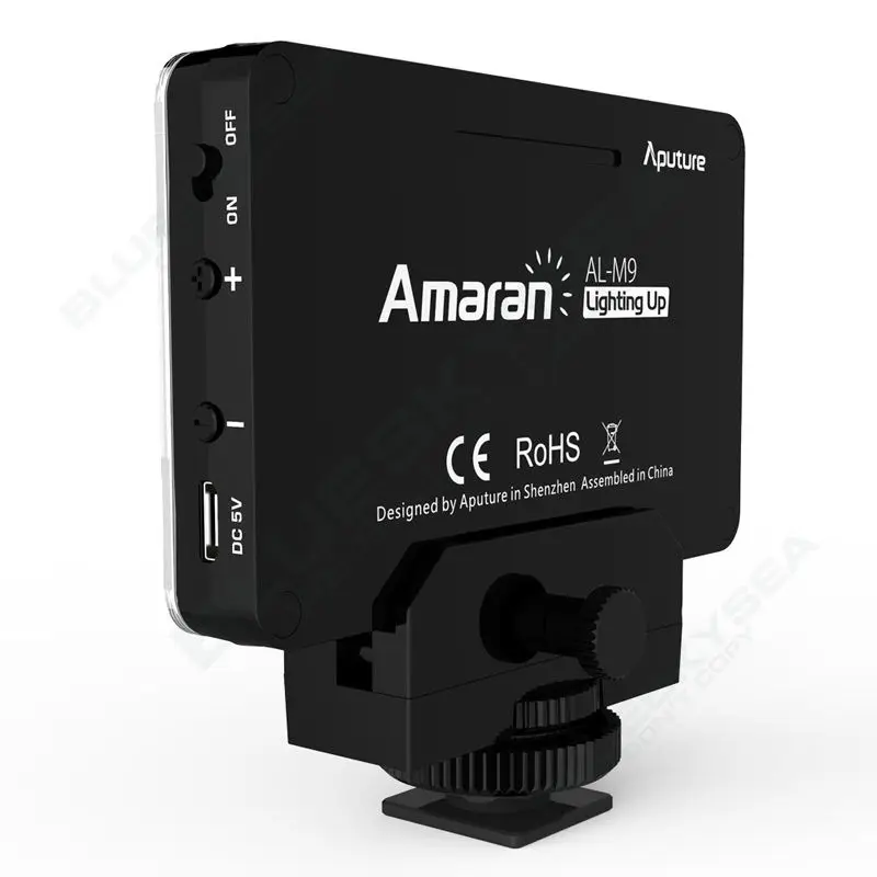 Amaran AL-M9 Lighting Up includes universal adapter that offers you the ability to mount it on the hot-shoe of a camera, tripod, light stand or other supports using the 1/4 thread on the underside.
