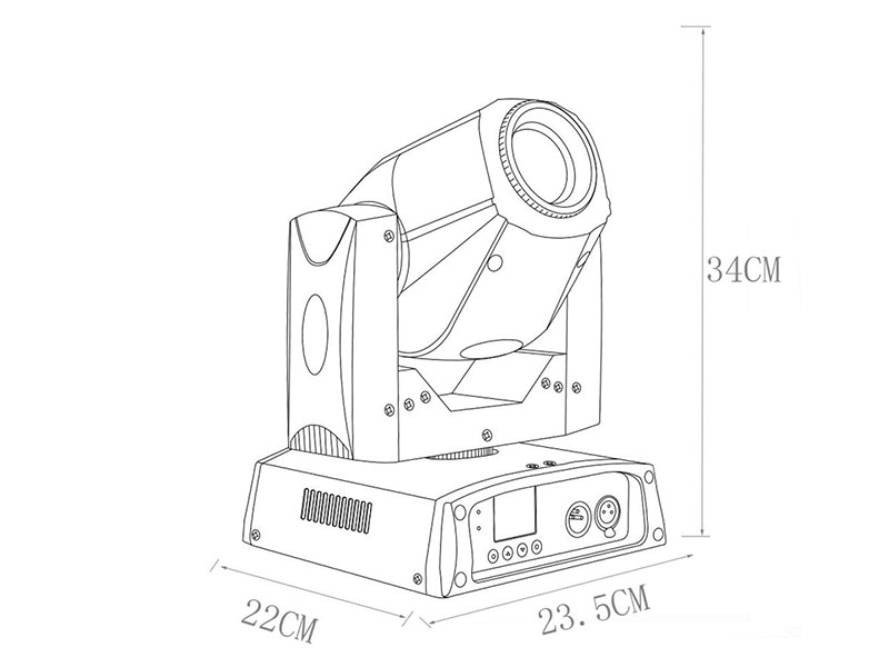 ※ CONTROL ◈ (14) DMX Channel Modes ◈ 4 Button Control Panel◈ LCD Menu Display ◈ 3pin DMX In/Out | ※ POWER ◈ 100-240V AC, 50/60Hz ◈ 100W Power Consumption | ※ SIZE/WEIGHT ◈ Length: 23.5cm ◈ Width: 22cm ◈ Height: 34cm ◈ Weight: 5.65kg |