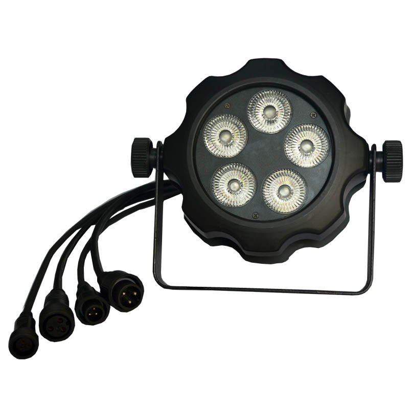 ◪The 5pcs 18W RGBWA+Purple 6in1 color slim par light is an IP65 outdoor rated compact Wash Fixture, create rich hues and smooth color mixing for stage or wall washing.