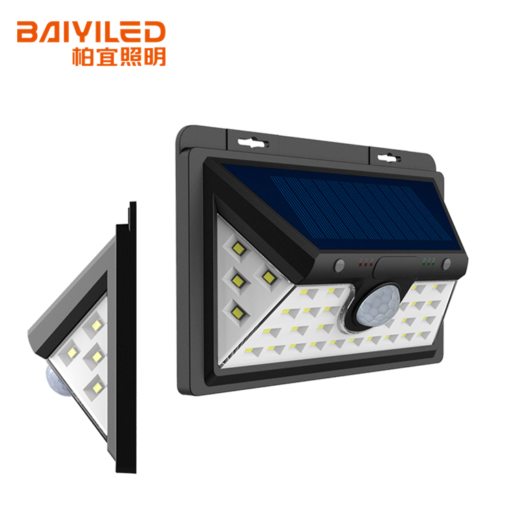 Solar energy motion sensing wall light can be installed in the wall or eaves lamp with the channel, garage and corner of sunlight, beautiful shape, energy saving and environmental protection, large lighting area, good lighting effect, concentrated light source, uniform illumination, small glare, easy to control.