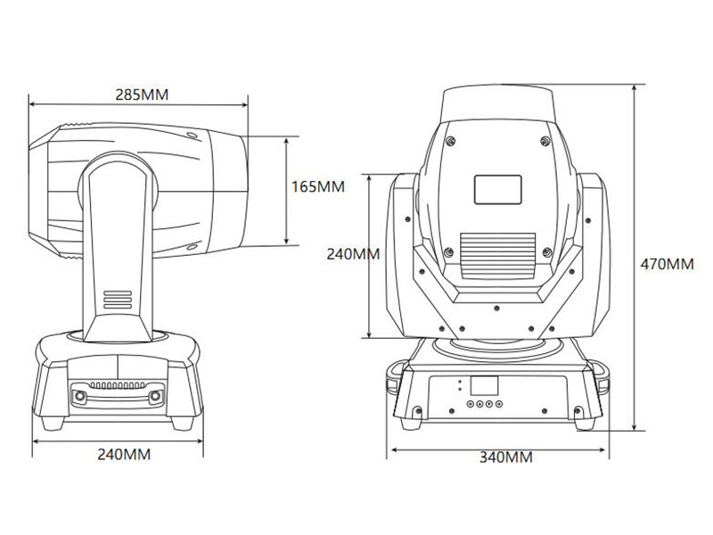※ CONTROL ◈ (15/19) DMX Channel Modes ◈ 4 Button Control Panel◈ LCD Menu Display ◈ 3pin DMX In/Out | ※ POWER ◈100-240V AC, 50/60Hz ◈120W Power Consumption | ※ SIZE/WEIGHT ◈ Length: 33cm ◈ Width: 23cm ◈ Height: 47cm ◈ Weight:10.35kg |