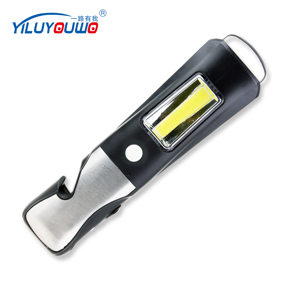 New Product Small Portable Plastic Emergency Working Light COB LED Torch Flashlight With Safety Hammer And Seatbelt Cutter