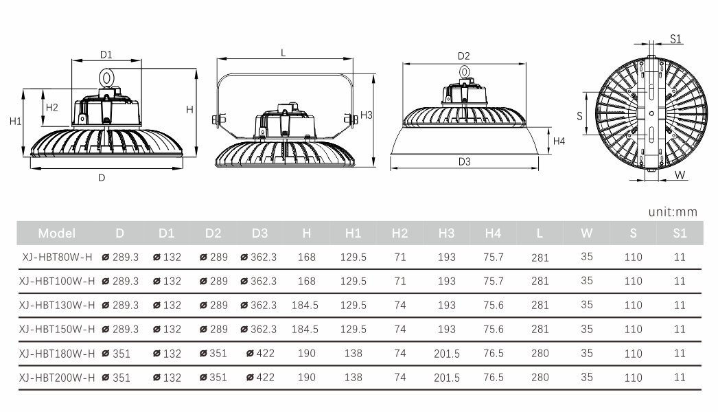 MM deisgn--Power,efficiency maximum,lamp volume Minimum.fins cooling and more led chips keep XJ-HBT always work in a high efficiency.various lens and bracket make it can fit any industry application.Also, the MM design makes XJ-LBT the most cost-effective.