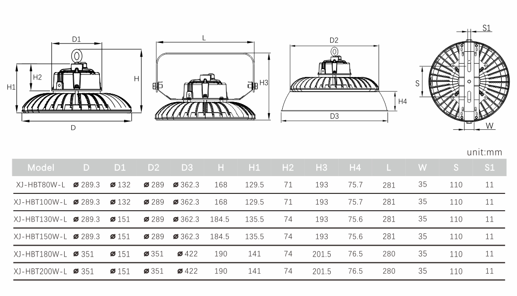 MM deisgn--Power,efficiency maximum,lamp volume Minimum.fins cooling and more led chips keep XJ-HBT always work in a high efficiency.various lens and bracket make it can fit any industry application.Also, the MM design makes XJ-HBT the most cost-effective.