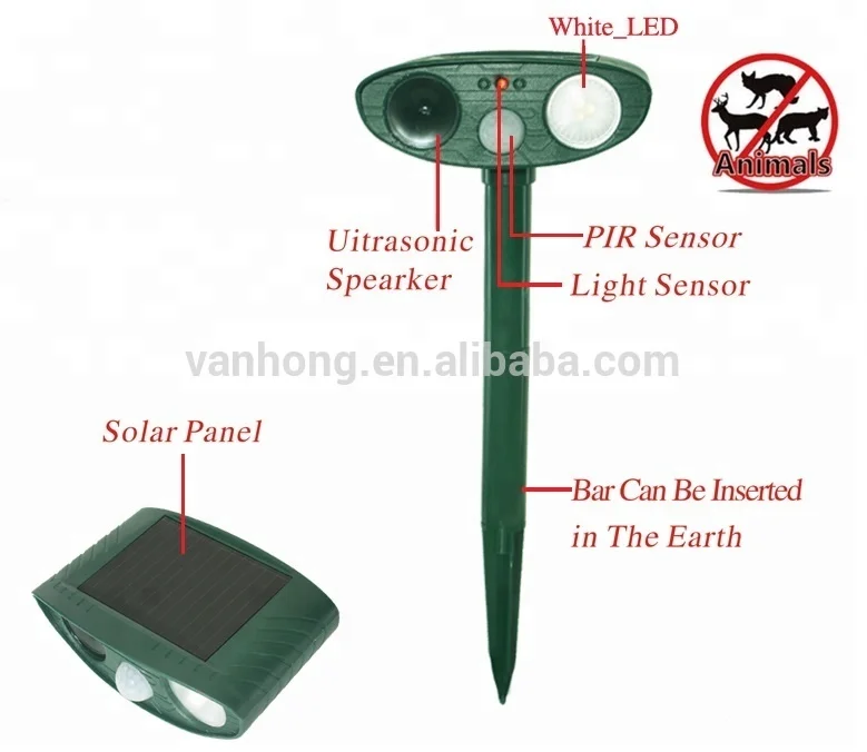 Ultrasonic Sound -- The Repeller emits powerful ultrasonic sounds to scare away unwanted animals. Equipped with an infrared motion sensor, the ultrasonic will be activated as soon as animals enter the protected range.
