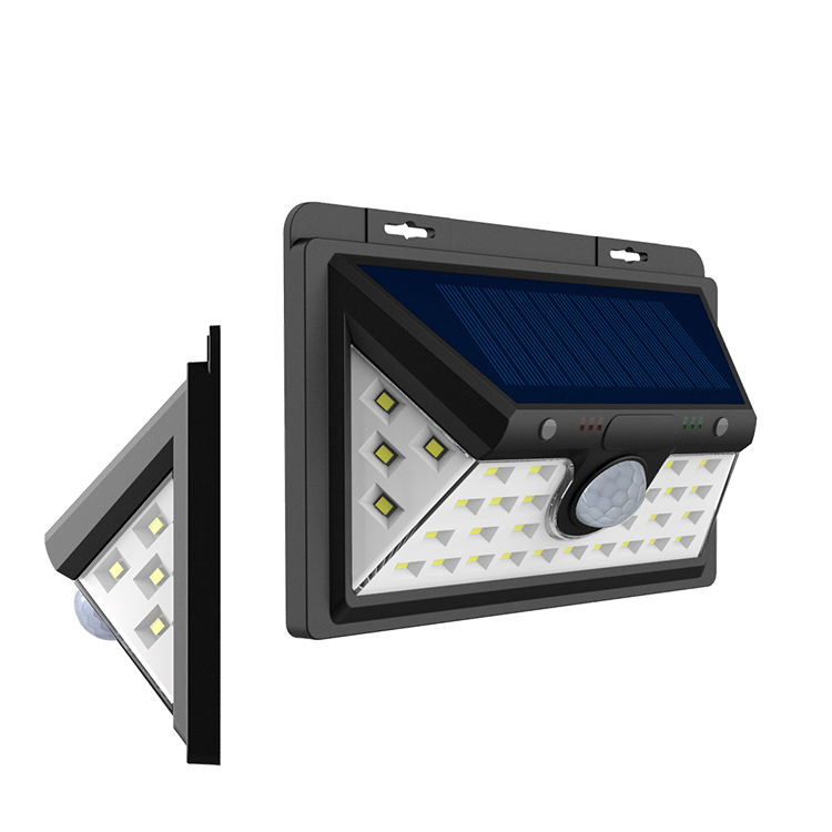 Solar energy motion sensing wall light can be installed in the wall or eaves lamp with the channel, garage and corner of sunlight, beautiful shape, energy saving and environmental protection, large lighting area, good lighting effect, concentrated light source, uniform illumination, small glare, easy to control.
