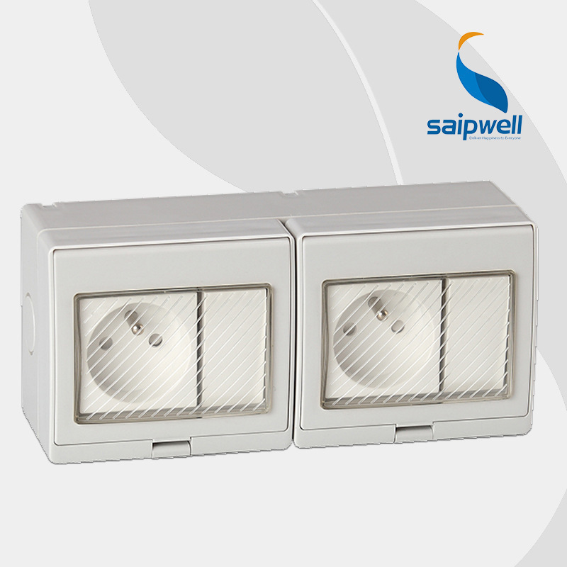 Saipwell Y One-Position Switch And Single Control With Two French Style Sockets 250V/13A IP55 Switch Socket(SPL-FRS)