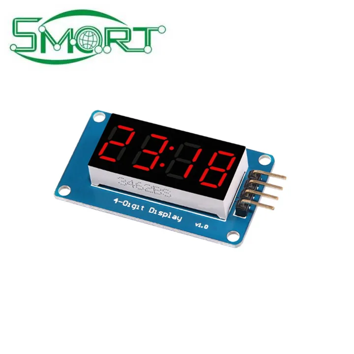 The module is a 12-foot clock with four common anode tube (0.36 inch) display module for driver IC TM1637, only two signal lines can make the MCU control four 8-segment digital tubes.