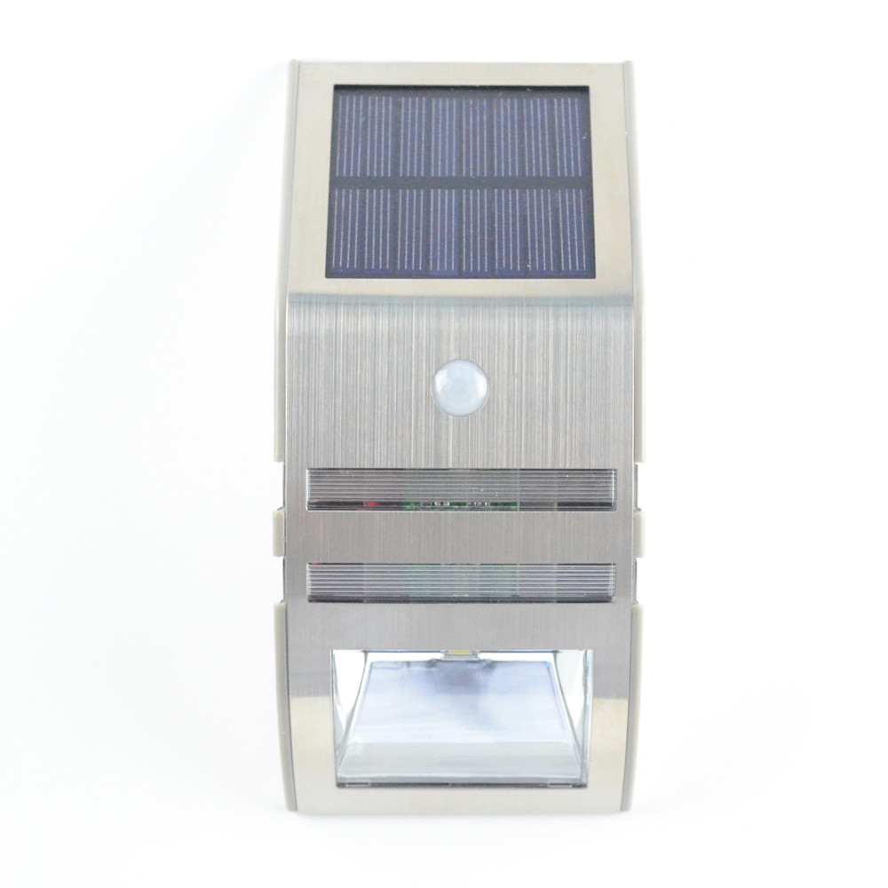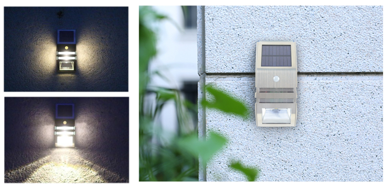 This solar-powered LED wall light features a lightweight stainless steel + ABS plastic for a durable, weatherproof design,which blends well with almost every house façade.Two sets of LEDs are designed, one is automatically turned on at dusk, and one is automatically lit when it detects someone passing by, the light provides for all-round comfortable and safe lighting conditions.