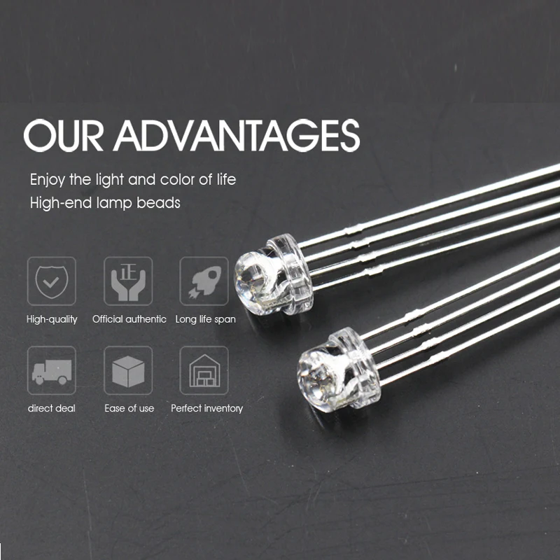 Round 5mm full color RGB common yin positive transparent four-foot Round LED light-emitting diode (1000pcs)