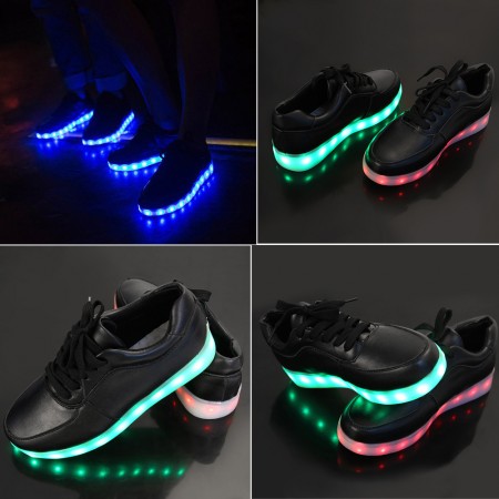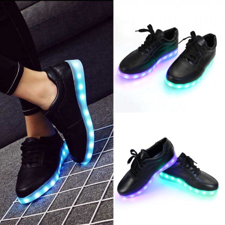 USB Charger 7 Colors LED Lights Lace Up Luminous Shoes Sneaker Black