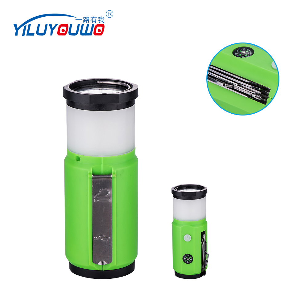 | Function | Flashlight/Camping Light/5-in-1 Multi Tools/Compass/Cigarette Lighter/Hook/USB Charging/Mobilephone Charging |