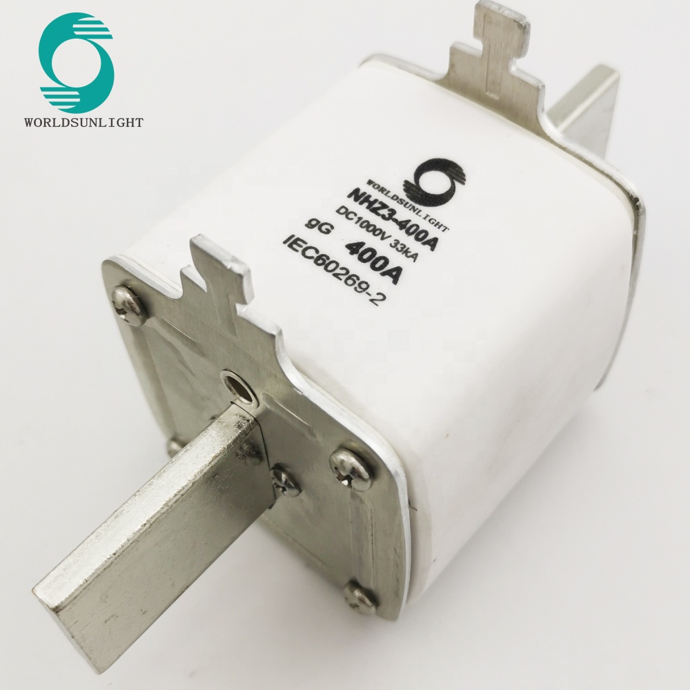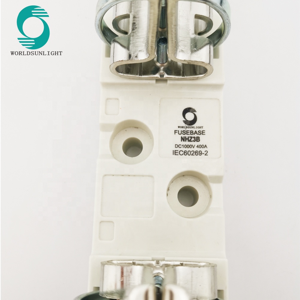 Worldsunlight NHZ3-400A IEC60269-2 33kA DC1000V gG 400A DC square pv solar fuse with fuse holder box base NHZ3B