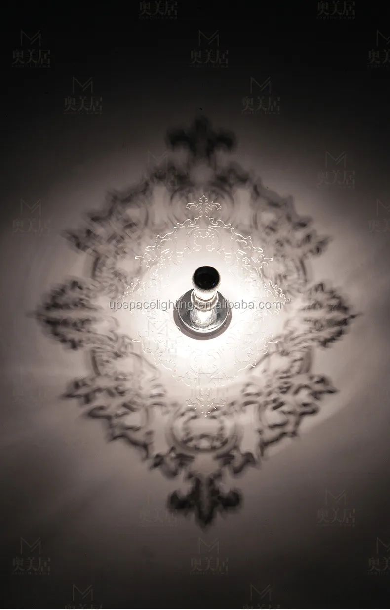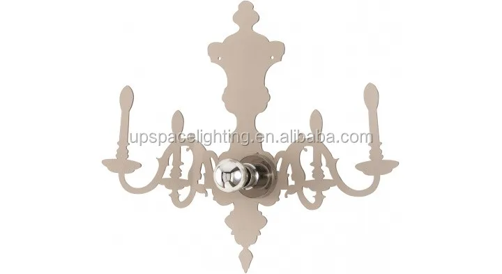 Wall light with shade in transparent plexiglass, supplied with 1 silver-crowned bulb. Cut in the shape of a 17th-century chandelier, the enlarged shadow of the shade is projected onto the wall behind it. Winner, VIA 2004.